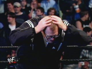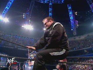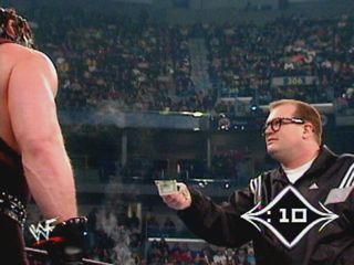 Unfortunately, one of the wrestlers that Drew came across (that actually was in the Rumble) was a big 7-foot "monster" known as Kane. Kane never said anything as he passed Drew. After Kane left, Drew said "What a grouch." Not a good first impression.