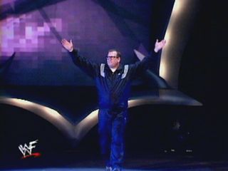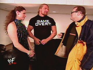 Earlier in the night, Drew was spotted getting out of his limo. Drew mainly stayed backstage, he never had a front row seat (which is what I thought). He met up with Triple H (who had an appearance in an episode of DCS as a spokesman for Buzz Beer). He met up with WWF CEO Vince McMahon, who then offered Drew a chance to be in the Rumble... actually, Vince told Drew he was in the Rumble.